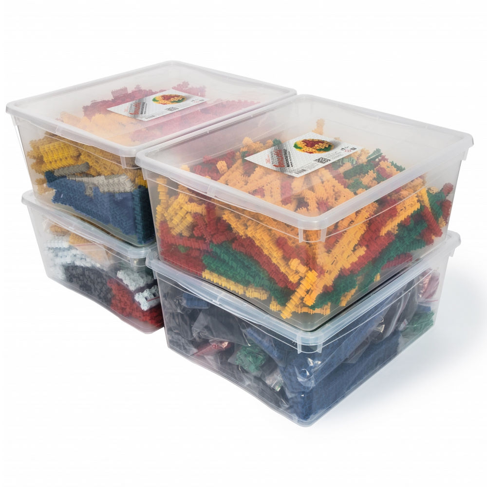В набор «Мидикластика» входят все типы базовых деталей (12 разных) семи цветов, а так же защелки и переходники. В 4 пластиковых контейнерах. Детали подобраны в опимальной пропорции. Набор рассчитан примерно на 6-8 учащихся.