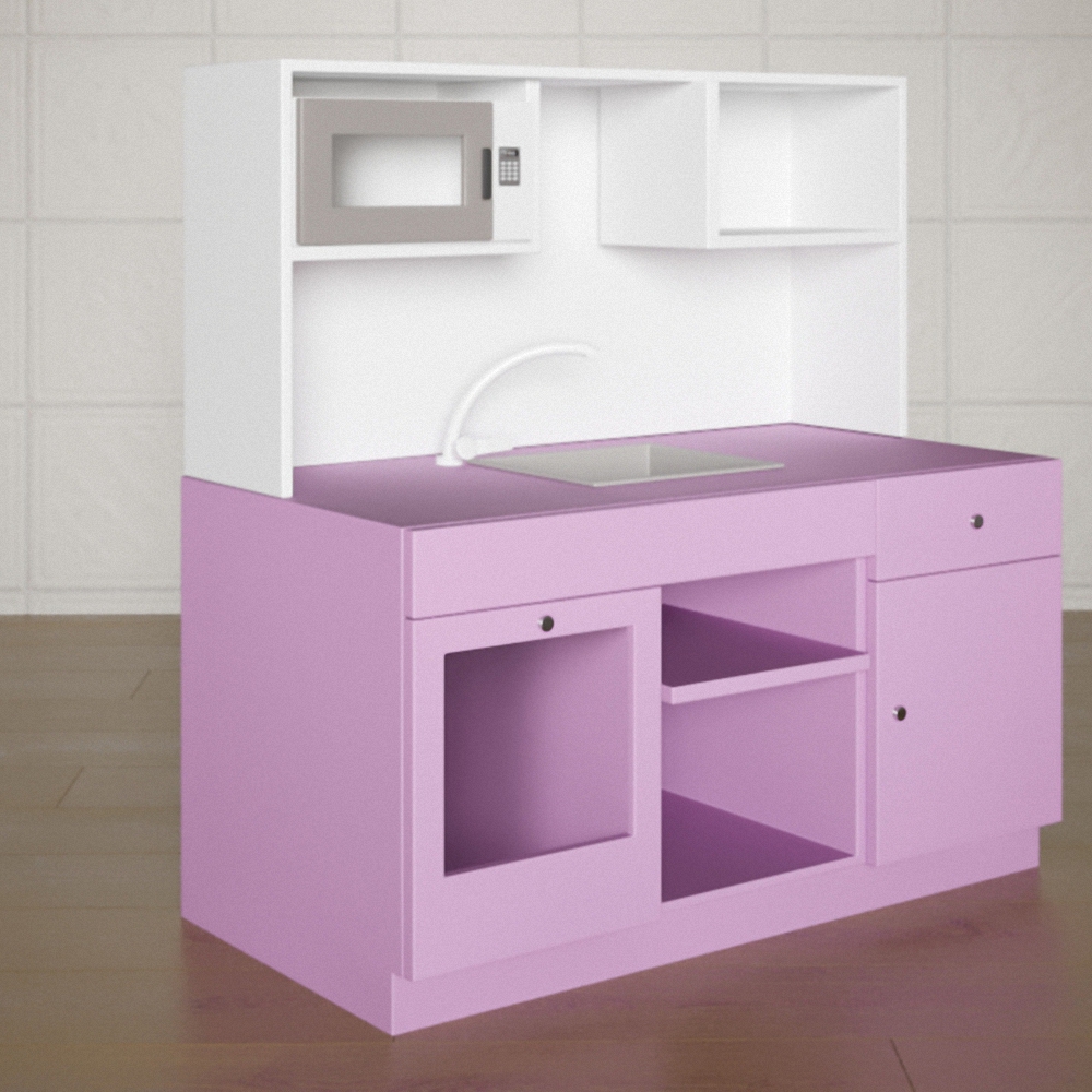 Бытовые модули с имитацией функционала «взрослой» мебели предназначены для развития социально-коммуникативных навыков у детей дошкольного возраста, а также развития у них таких полезных и необходимых навыков, как ответственность и самостоятельность. Кухня «Марина» - один из таких модулей. Его несомненные достоинства – лаконичный и стильный дизайн, компактные размеры и максимальная реалистичность в исполнении.