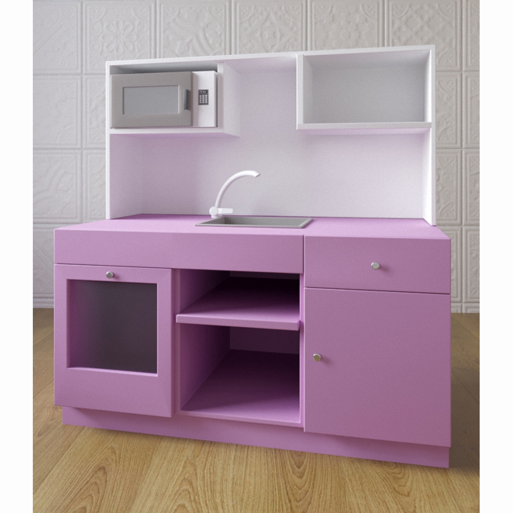 Детская кухня «Марина» визуально разделена на 2 яруса – нижний окрашен в мягкий лавандовый цвет, а верхний – в снежно-белый. Для игры имеется все необходимое – духовой шкаф, СВЧ-печь, мойка, 2 автономные столешницы и удобные полочки для хранения игровых наборов посуды и муляжей продуктов питания. Кухня изготовлена из материалов высокого качества, что позволяет пользоваться ими долгое время без вреда для здоровья.