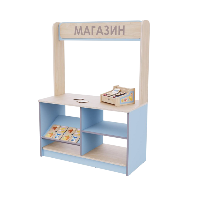 Детский магазин с прилавком, кассой и продуктами станет отличным выбором для оснащения центральной группы детского сада. Он будет способствовать развитию детей через игру в увлекательной и безопасной форме.