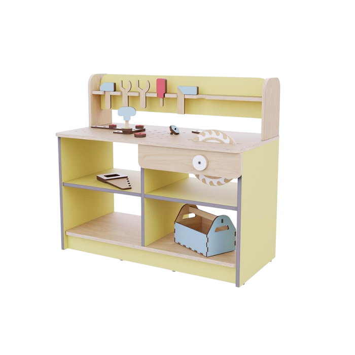 Главная Каталог Подготовительная группа и детский сад Мебель для детского сада Игровая мебель Верстак с набором инструментов из коллекции «НЕГА» (желтый)