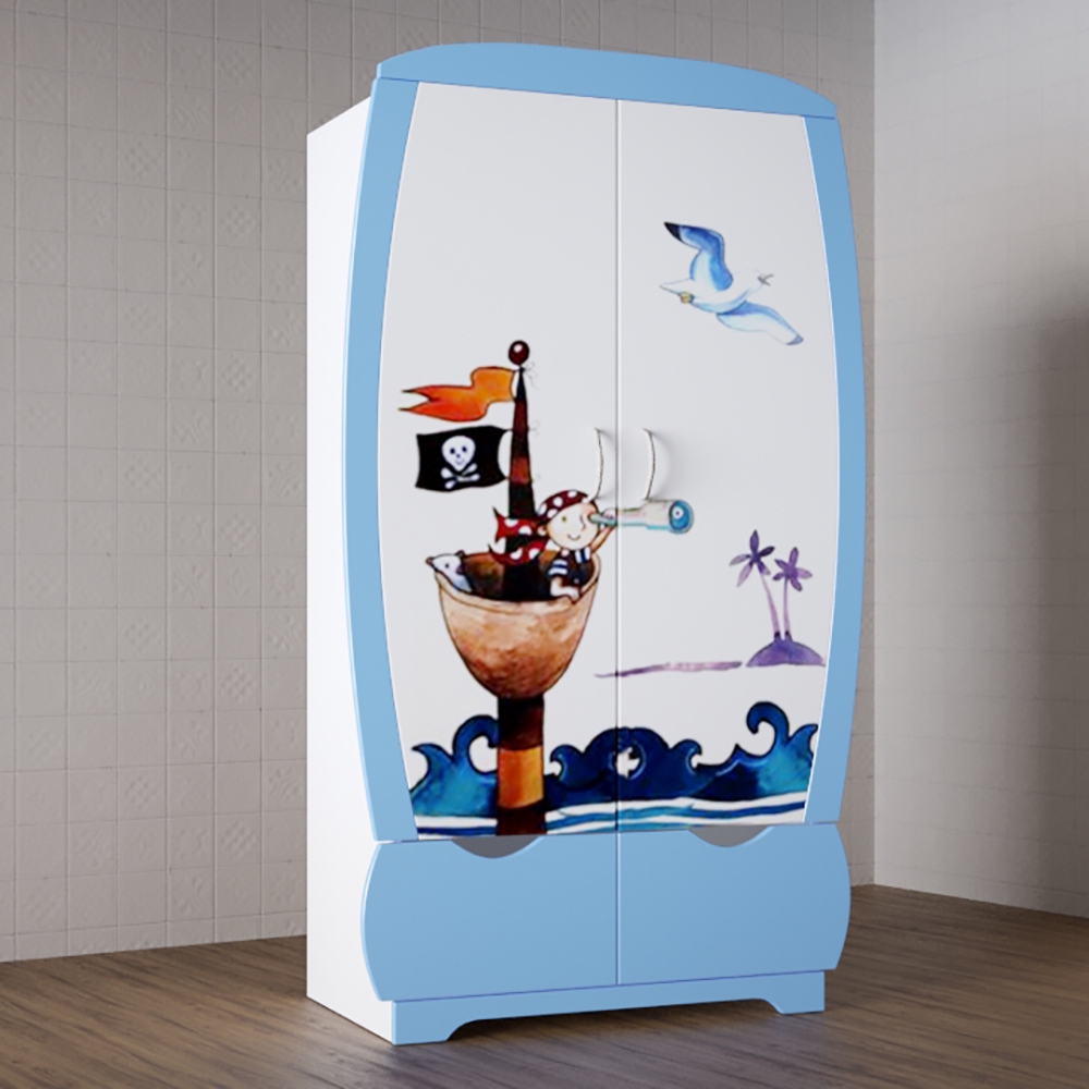 Шкаф «Капитан» создан в нежно голубом цвете, что нравится мальчикам. Помогает детям с раннего возраста вырабатывать полезные качества в виде умения хранить все на своих местах. Универсальный гардероб позволяет с первых минут привлечь внимание детей, что способствует стимуляции поддержания порядка, а также самостоятельности.