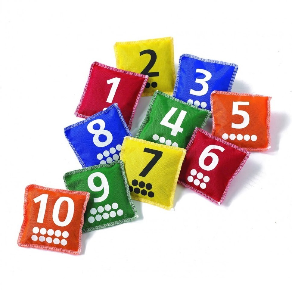 Используйте Мешочки с цифрами, чтобы развивать активность детей, их мышление, внимание, память и речь, координацию движений.