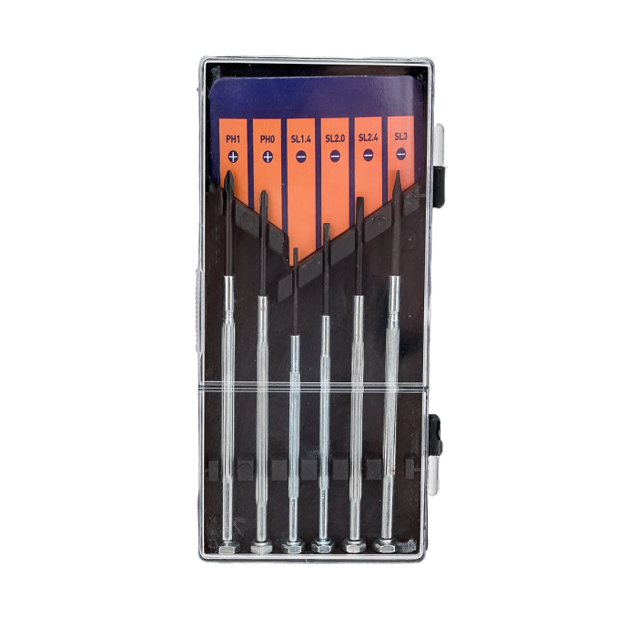Набор отверток для точных работ 6 штук представлен в оптимальной комплектации и содержит самые популярные типоразмеры шлицев. Рабочие части изготовлены из прочной инструментальной стали, что обеспечивает высокую прочность и стойкость к износу.